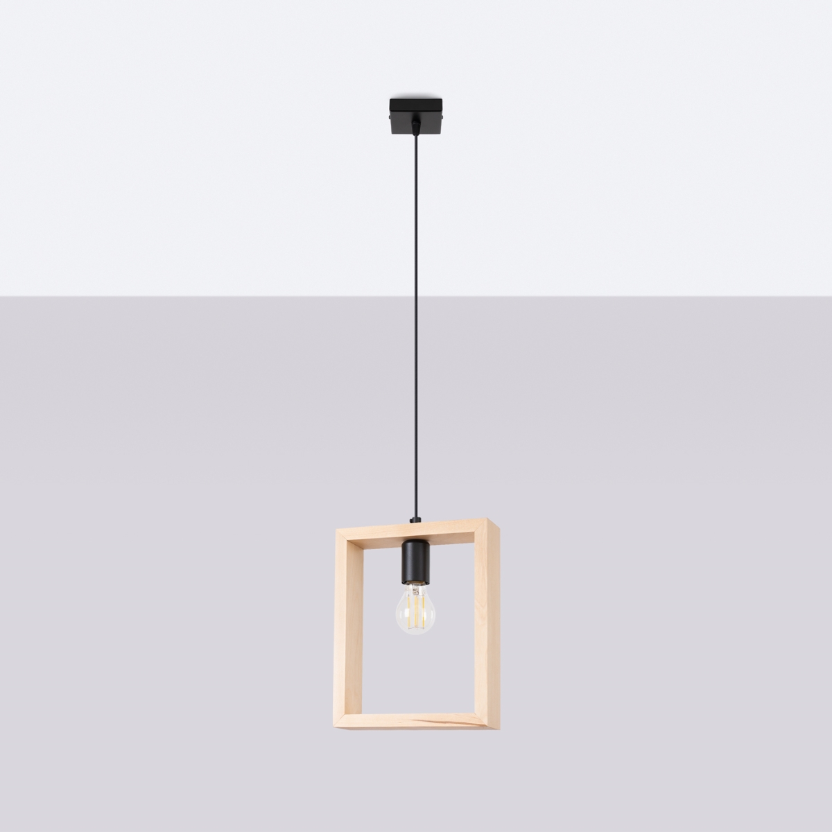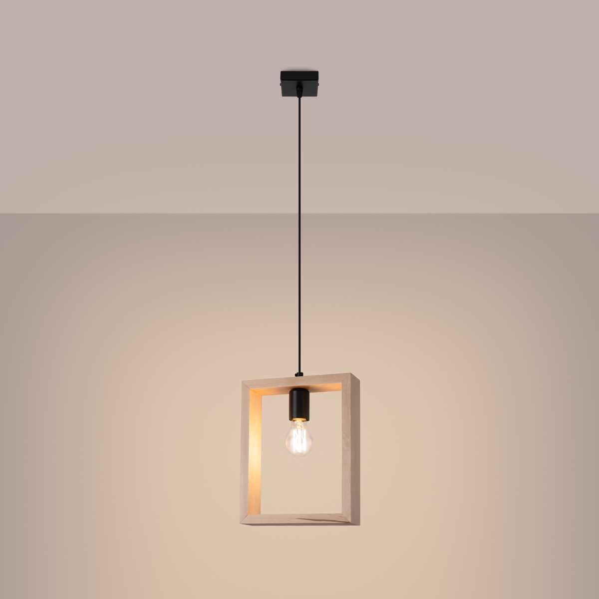 Esta elegante lámpara colgante combina sencillez y modernidad, con un marco cuadrado de madera y una única bombilla suspendida en el centro. Encaja perfectamente en interiores de estilo escandinavo o como acento en espacios más eclécticos. La sencillez del diseño permite utilizar la lámpara en varias habitaciones de la casa.