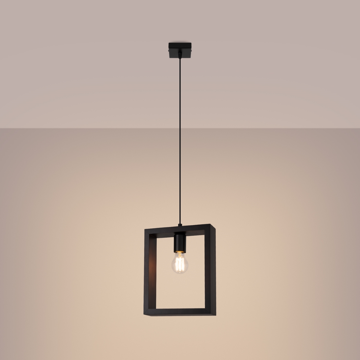 Esta elegante lámpara colgante combina sencillez y modernidad, con un marco cuadrado de madera y una única bombilla suspendida en el centro. Encaja perfectamente en interiores de estilo escandinavo o como acento en espacios más eclécticos. La sencillez del diseño permite utilizar la lámpara en varias habitaciones de la casa.