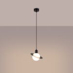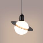 Esta elegante lámpara colgante, inspirada en la apariencia de un planeta anillado, es una excelente elección para los amantes del diseño moderno. Su forma única le confiere un carácter distintivo y cósmico. La pantalla de la lámpara tiene forma de esfera blanca o negra, rodeada por un anillo plano y discreto, lo que la hace llamativa y un acento elegante en cualquier interior. Ideal para colgar encima de una mesa de comedor, en el salón, o como llamativa decoración en el dormitorio. Esta lámpara no sólo proporciona una iluminación excelente, sino que también añade un ambiente moderno y ligeramente futurista al interior.